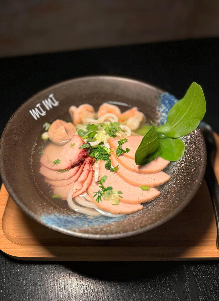 PHỞ ist eine traditionelle vietnamesische Nudelsuppe, die ihren Ursprung im frühen 20. Jahrhundert in Nordvietnam hat. Sie besteht aus einer reichhaltigen, über einen langen Zeitraum geköchelten Brühe, die mit Reisnudeln, frischen Kräutern und dünn geschnittenem Rindfleisch oder Huhn serviert wird. Die Brühe, gewürzt mit Zimt, Sternanis und Kardamom, verleiht der Suppe ihren charakteristischen Geschmack. PHỞ wird häufig mit Limettensaft, Chili, Hoisin-Sauce und Fischsauce verfeinert und gilt als Symbol der vietnamesischen Küche sowie der Gastfreundschaft.